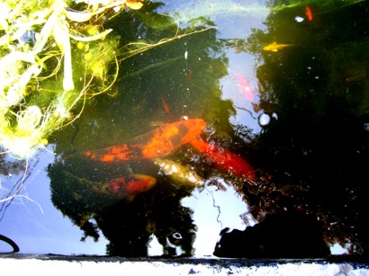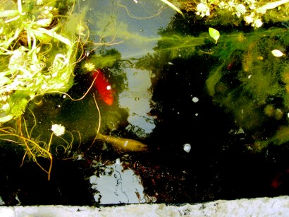 A few fish swimming around. There are about 25 koi and goldfish now.